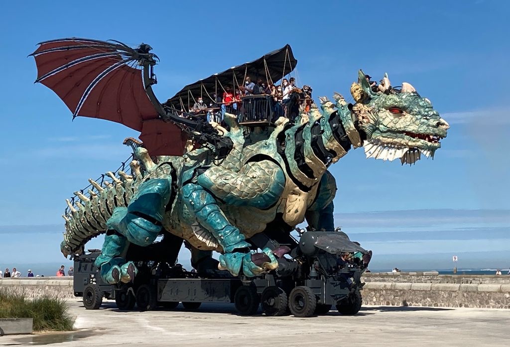 … und dann nach Calais. Hier steppt an der Strandpromenade der Bär. Wir können sogar in der Ferne die Kreidefelsen der englischen Küste entdecken.