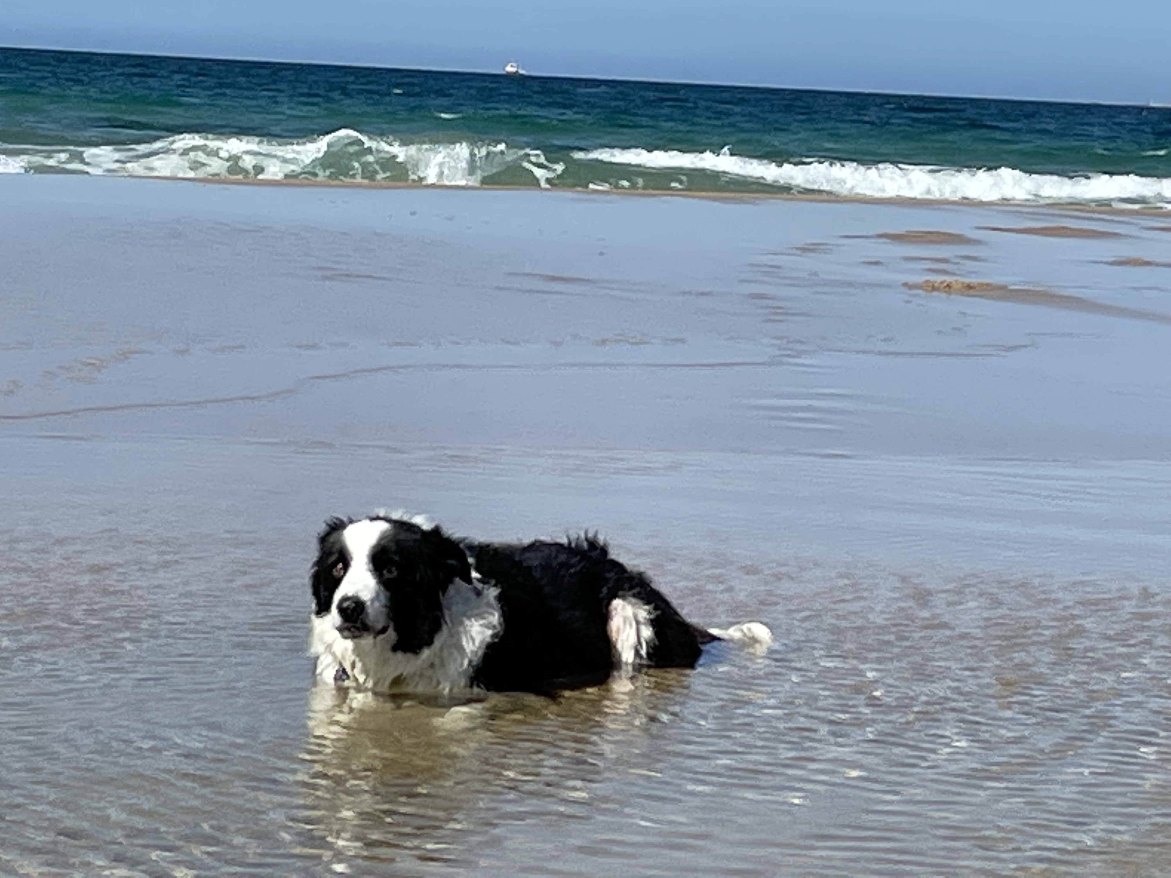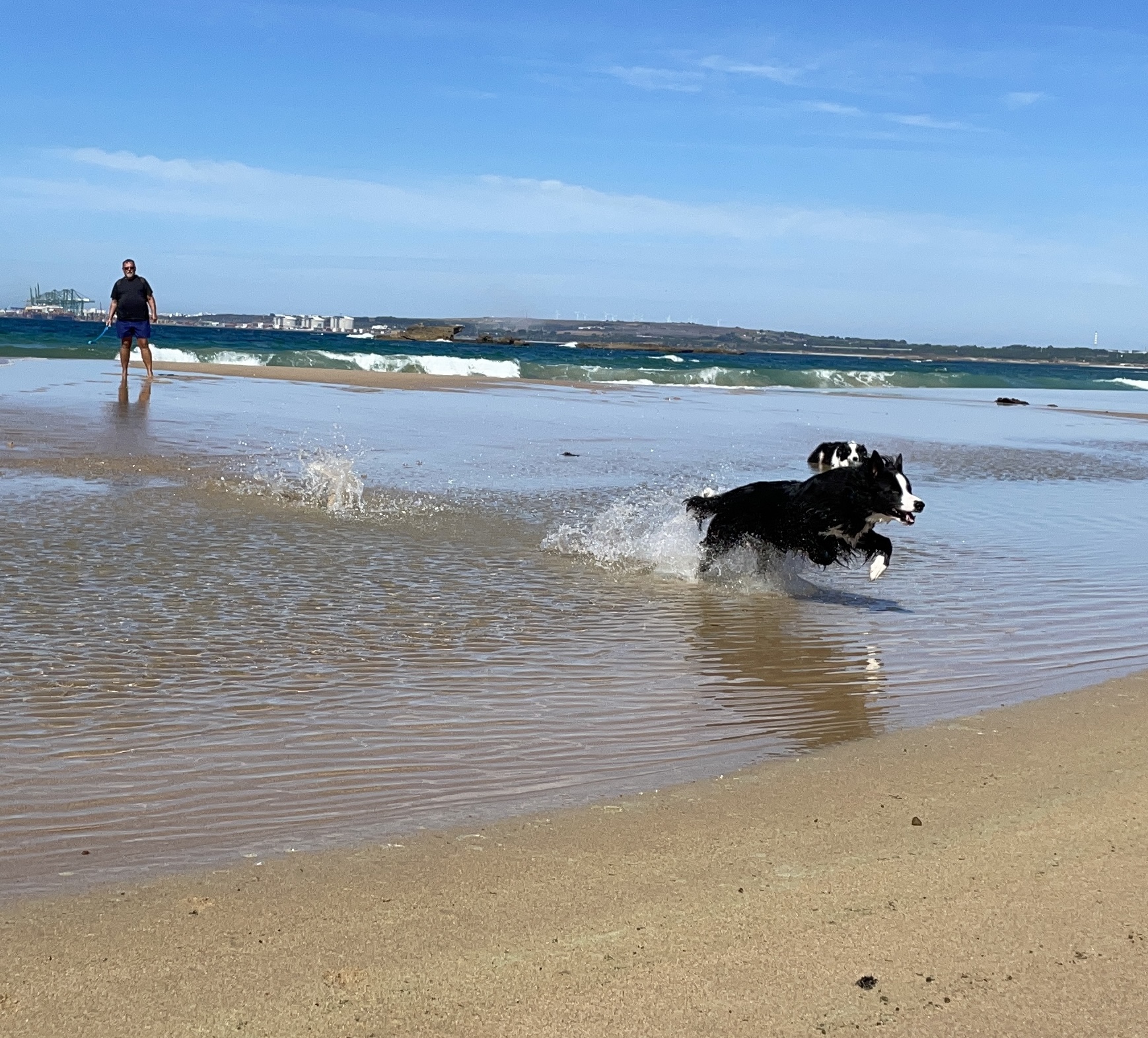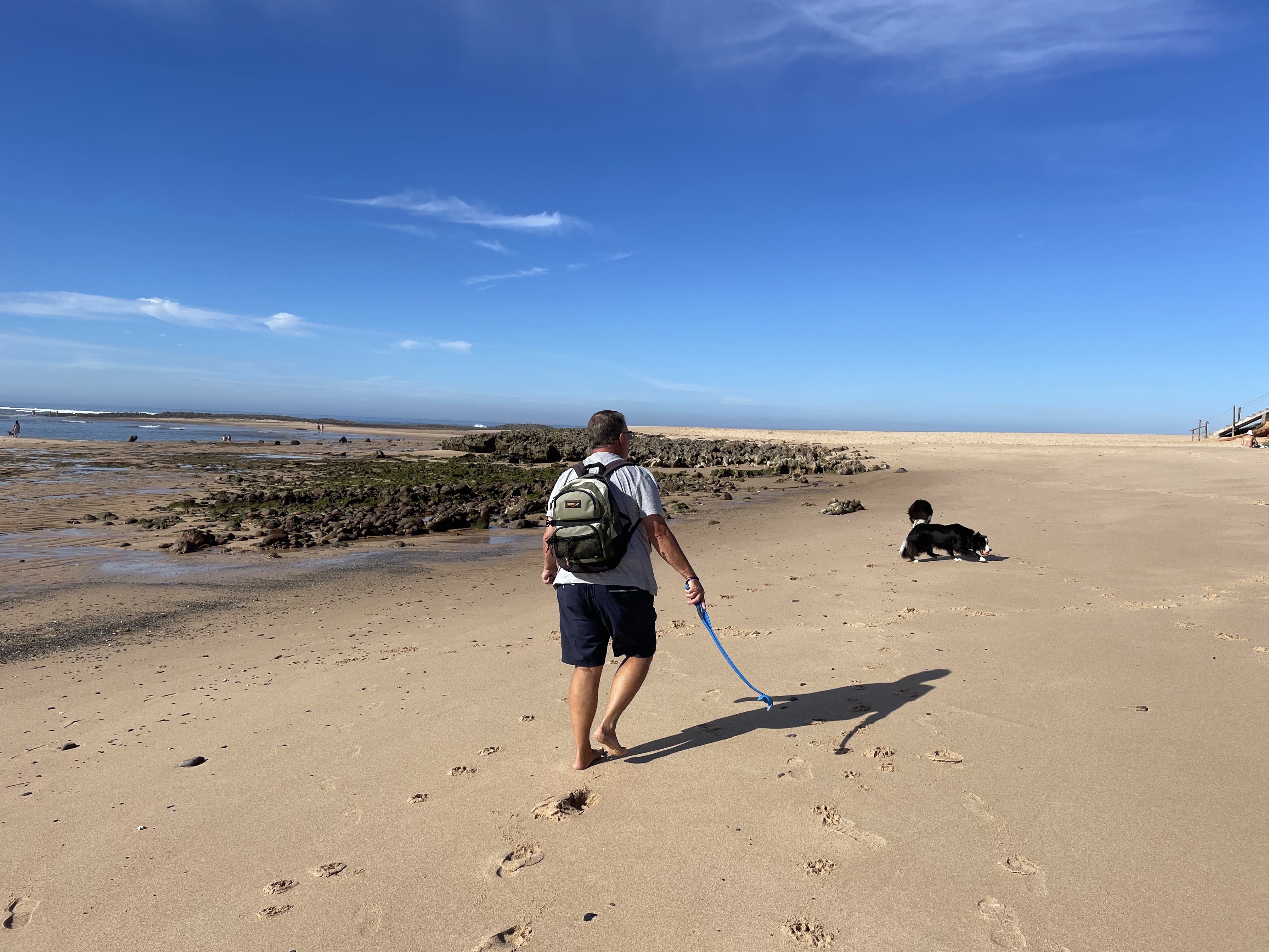 Mit dem Auto fahren wir mit den Fellnasen an die nahe gelegenen Strände. Dort haben wir viel Spaß mit den Beiden