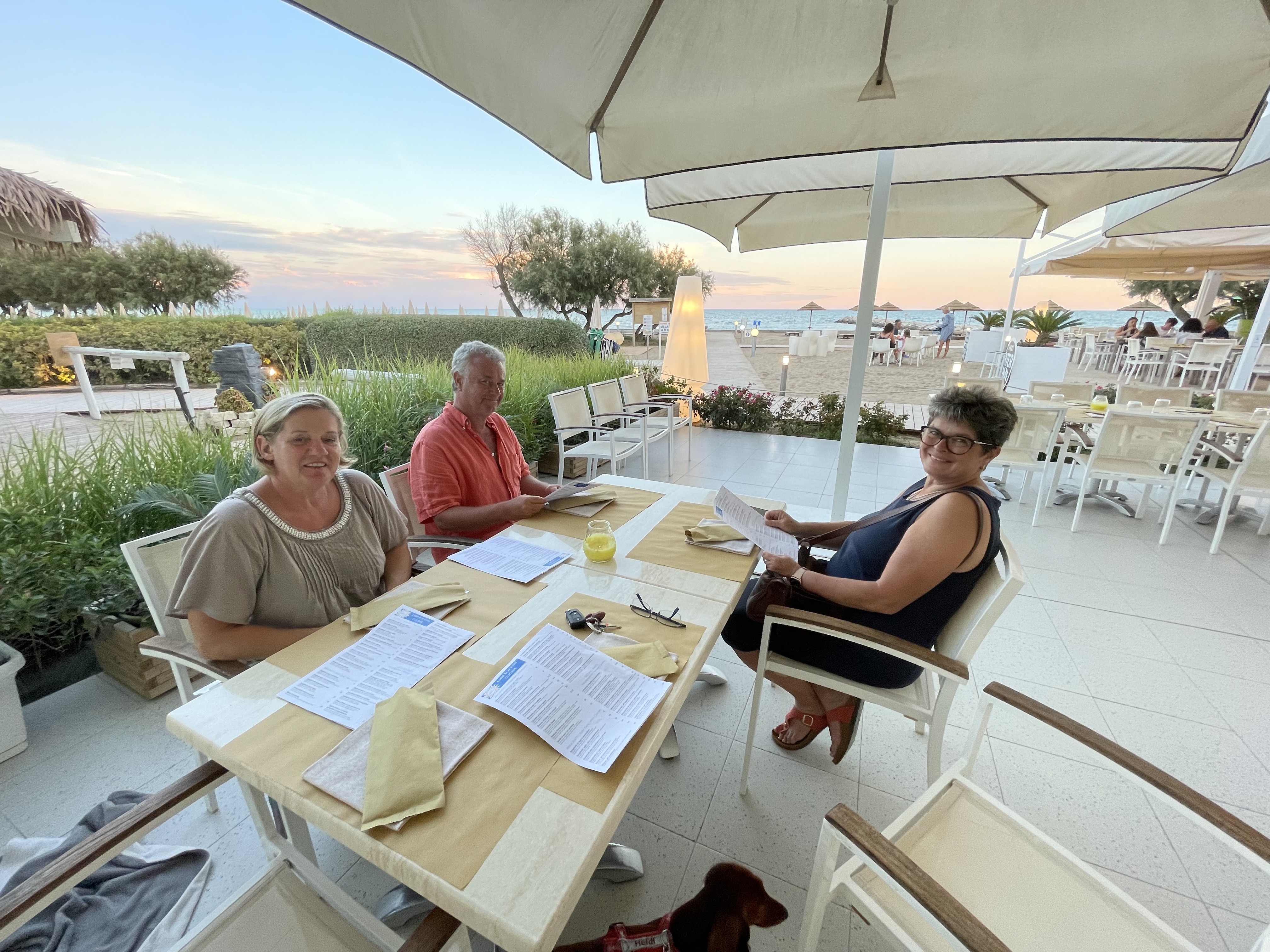 Am 22.08.2022 brachen wir dann morgens bei kühlen 14 Grad auf, um mit unserem “Löwen“ nach Caorle zu Sabine und Hans zu fahren. Mit unseren zwei Jungs und Gepäck war das kleine Auto voll beladen. Aber letztlich ging es besser als wir dachten. Nach zwei Hundepausen kamen wir doch relativ entspannt um 17.00 Uhr bei 32 Grad in Caorle an. Wir verbrachten herrliche Tage mit den Beiden und als wir am Freitag wieder fuhren waren wir zwar ganz schön k.o. (die Nächte waren alle sehr kurz!), konnten aber auf eine gute Zeit mit guten Freunden zurückblicken.