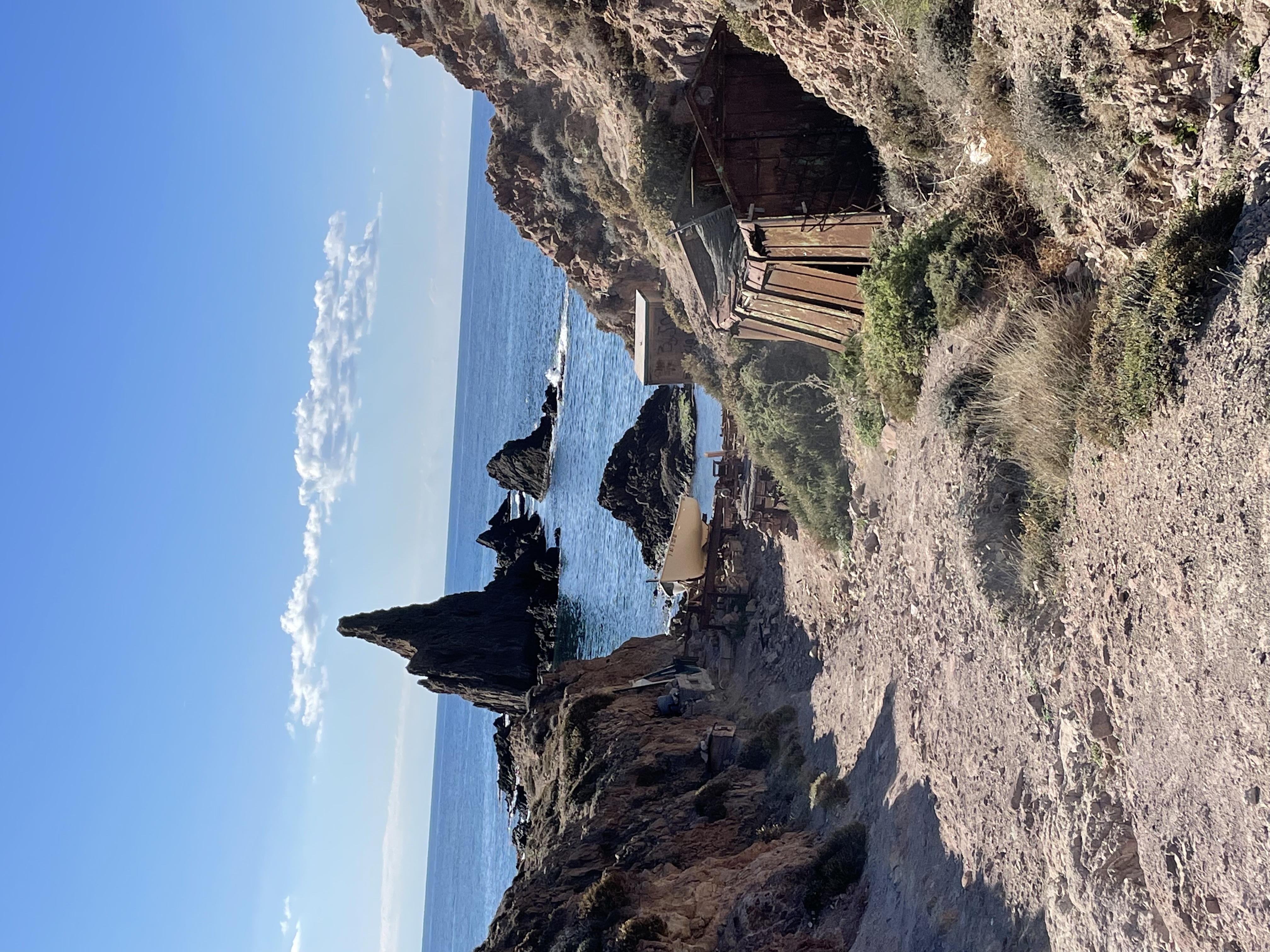 Unsere Freunde Martina und Frank haben uns empfohlen uns den Campingplastz Los Escullos am Cabo de Gata anzuschauen. Somit kurven wir durch die Berge bis zum Cabo de Gata. Der Campingplatz liegt sehr schön, ist zur Zeit aber sehr voll und die Plätze teilweise auch recht klein, mit Bäumen. Die Landschaft drum herum ist superschnell und zum wandern bestimmt ideal.