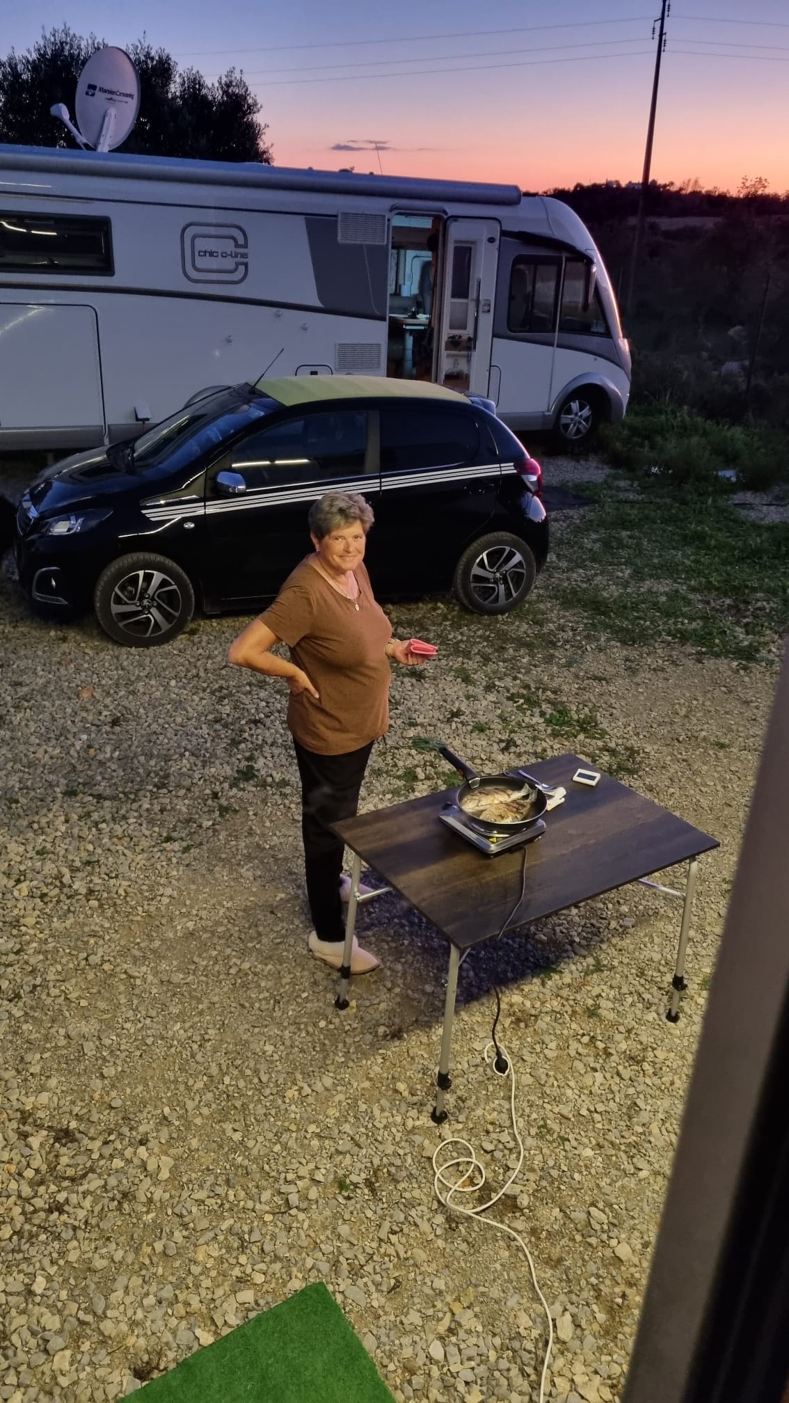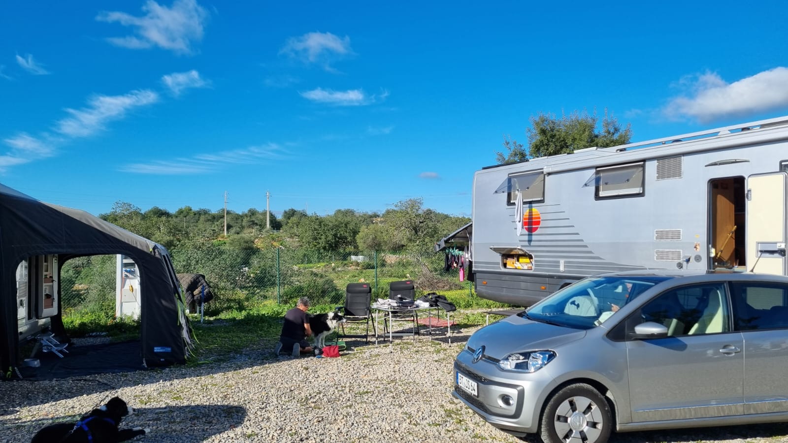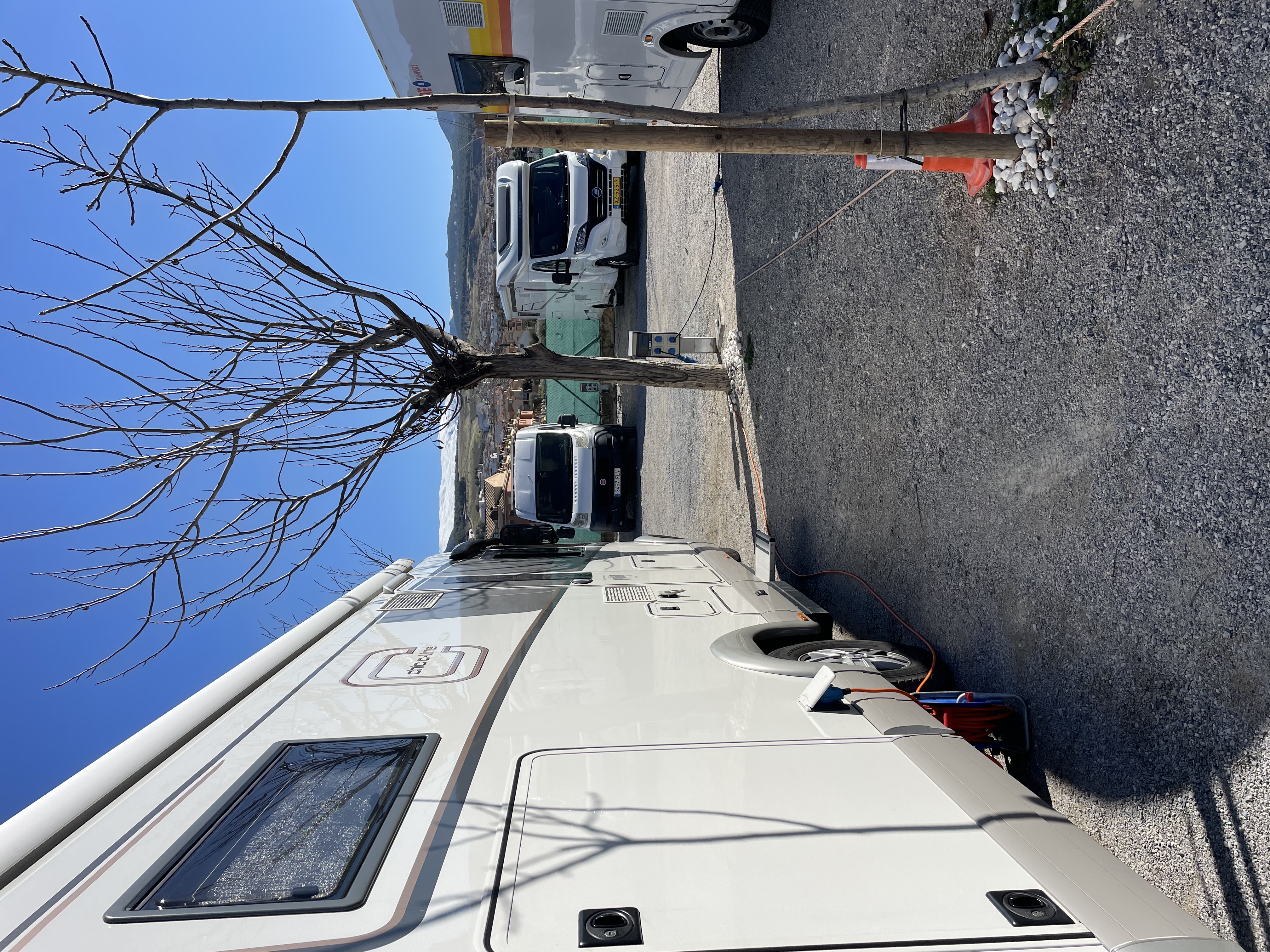 Zeitig am nächsten Morgen brechen wir auf um in Richtung Elche/Alicante zu fahren. Ursprünglich wollten wir auf dem Stellplatz https://www.campercontact.com/de/spanien/land-valencia/el-fondo-de-les-neus/84535/parking-restaurant-finca-la-montanosa übernachten, aber dieser ist wenig einladend. Also rufe ich bei der Finca Familia https://www.campercontact.com/de/spanien/land-valencia/monforte-del-cid/89439/finca-familia an und siehe da, wir bekommen noch einen Platz zwar ohne Strom, dafür mit herrlichem Ausblick. Wir werden sehr nett begrüßt, hier dürfen alle Hunde frei laufen und da war das Fiasko mit Rocky gleich mal vorprogrammiert, als sich der holländische Nachbarshund respektlos unserem Womo näherte wurde er gleich mal gepackt (Gott sei Dank ist nichts passiert). Man steht hier ganz nett, es ist extrem staubig, man kann wunderbar Spazierengehen, aber das war‘s auch schon. Es gibt keine ordentliche V+E und es wird auch kein Brötchenservice angeboten. Wir empfanden hier den Preis für die gebotene Leistung zu hoch. Ach ja und die letzten Meter der Zufahrt gehen über eine ausgewaschene Piste.