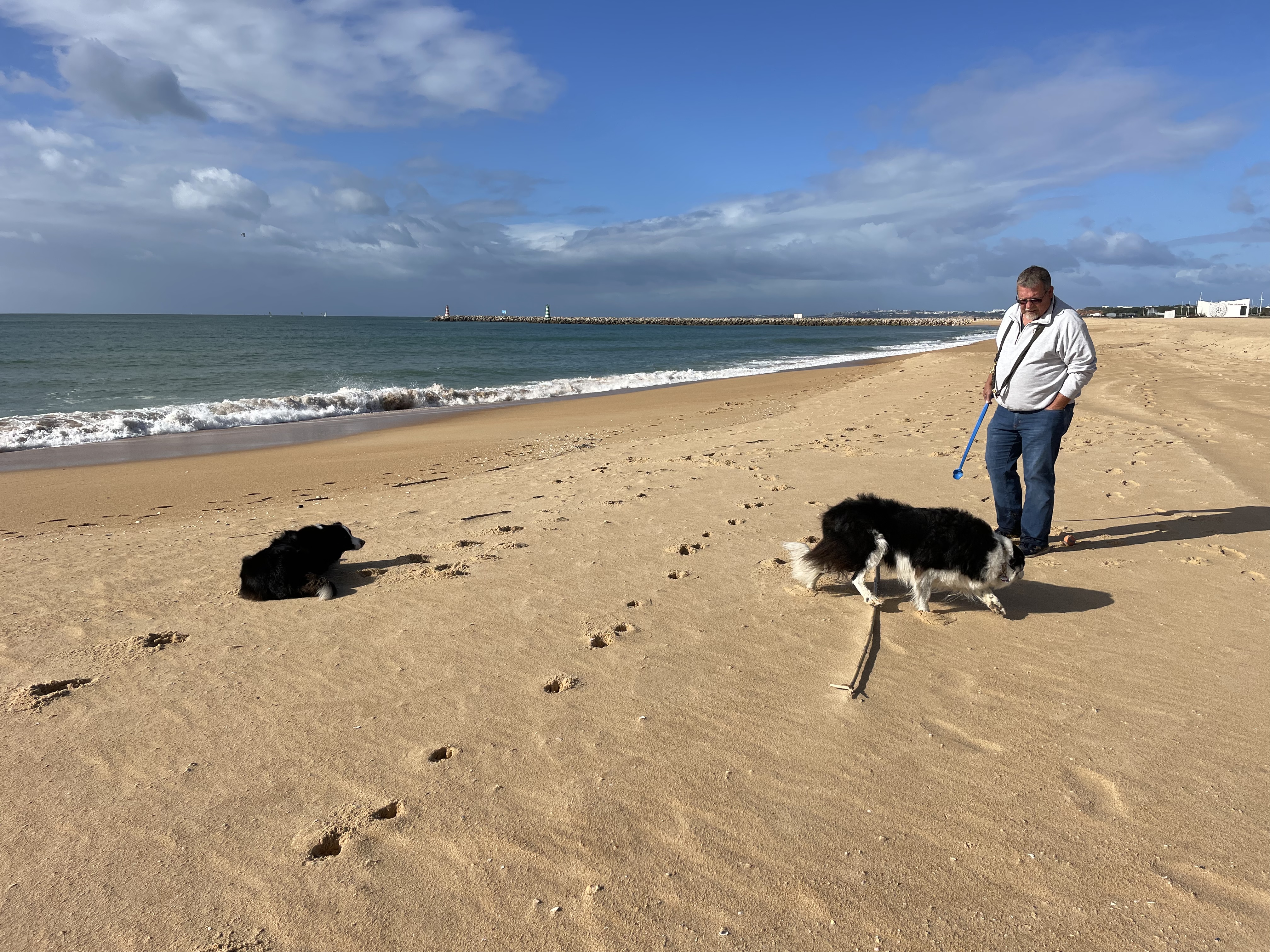 Am Mittwoch den 18. Januar fahren wir nach Quarteira zum Zigeunermarkt, der ist aber wesentlich kleiner als wir ihn in Erinnerung haben (September 2019) und letztlich haben die Stände mehr oder weniger immer wieder das Selbe. Etwas enttäuscht fahren wir an den Strand von Quarteira um mit den Fellnasen Gassi zu gehen., danach wollten wir dann noch mit Sigi und Hans-Jürgen nach Vilamoura, aber erstens kommt es anders, zweitens als man denkt. Steffen geht wieder mal so nah an der Wasserkanne und als eine große Welle kommt, schafft er es nicht mehr zu fliehen und ist bis zum Knie patschnaß inklusive Schuhen, Socken, Jeans – uns bleibt nur die Rückkehr zum Womo.