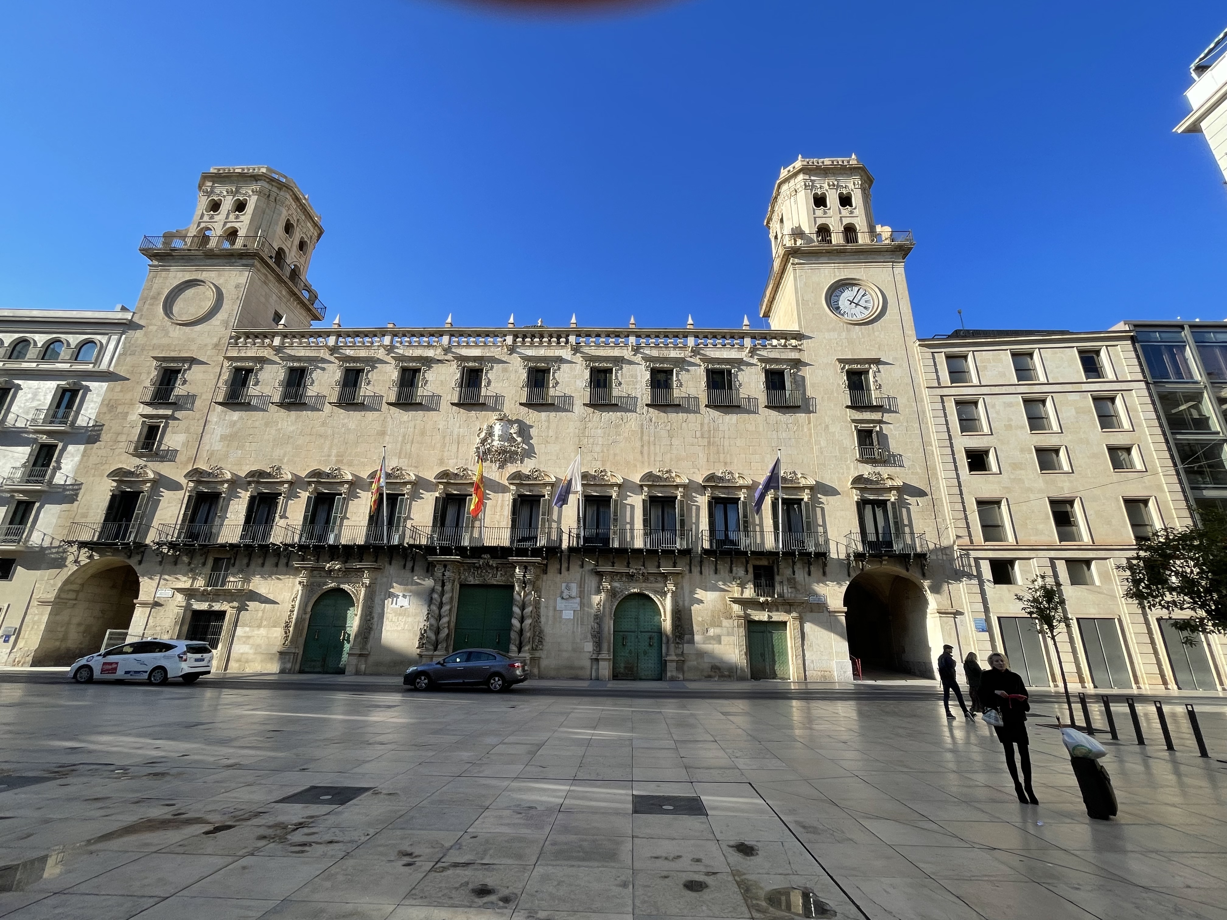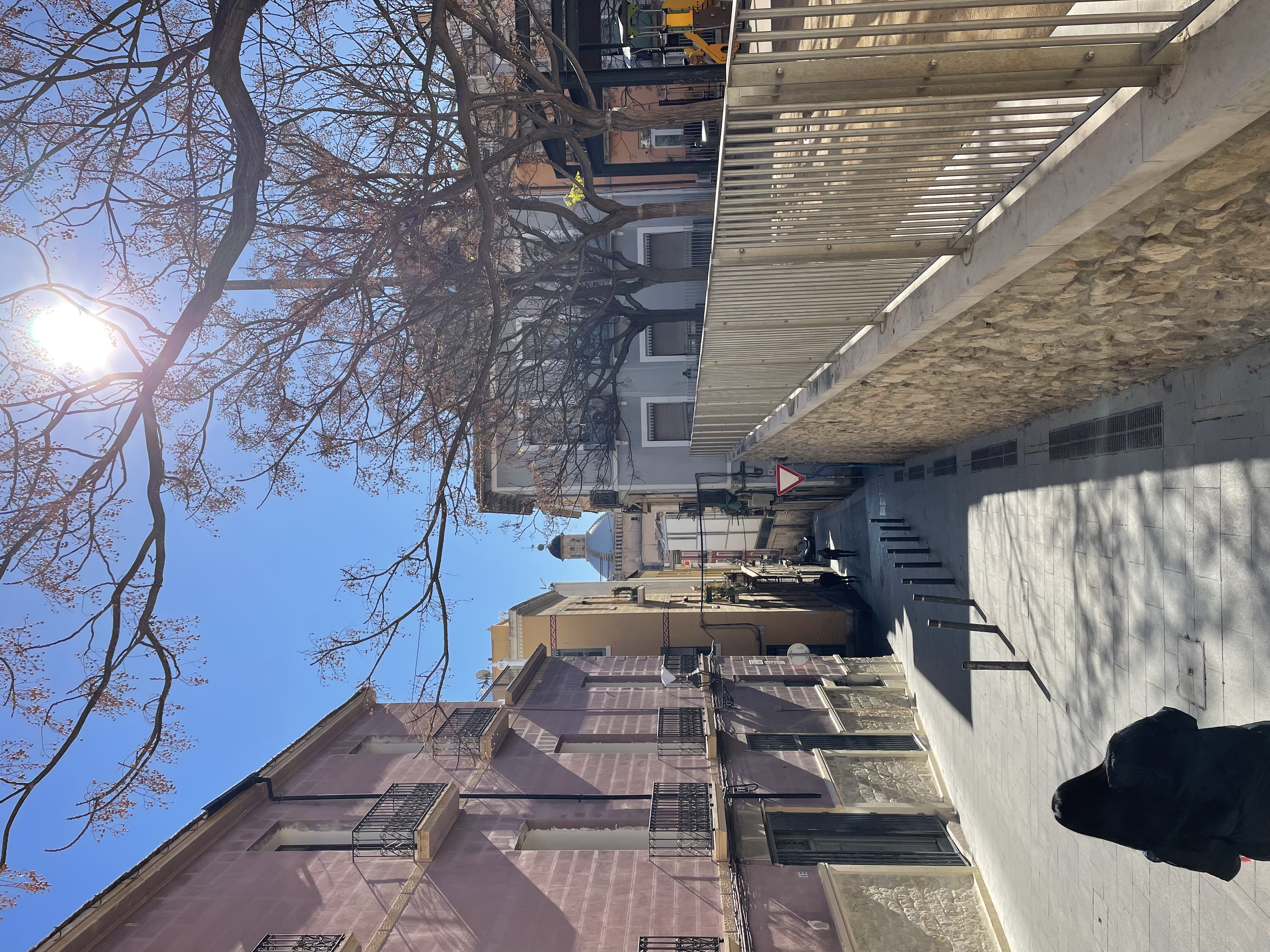 Nachdem Rocky hier nicht entspannt draußen sein kann fahren wir gleich mal nach Alicante. In den Häuserschluchten ist es fürchterlich schattig und kalt. Hier geht es uns ähnlich wie in Lorca.