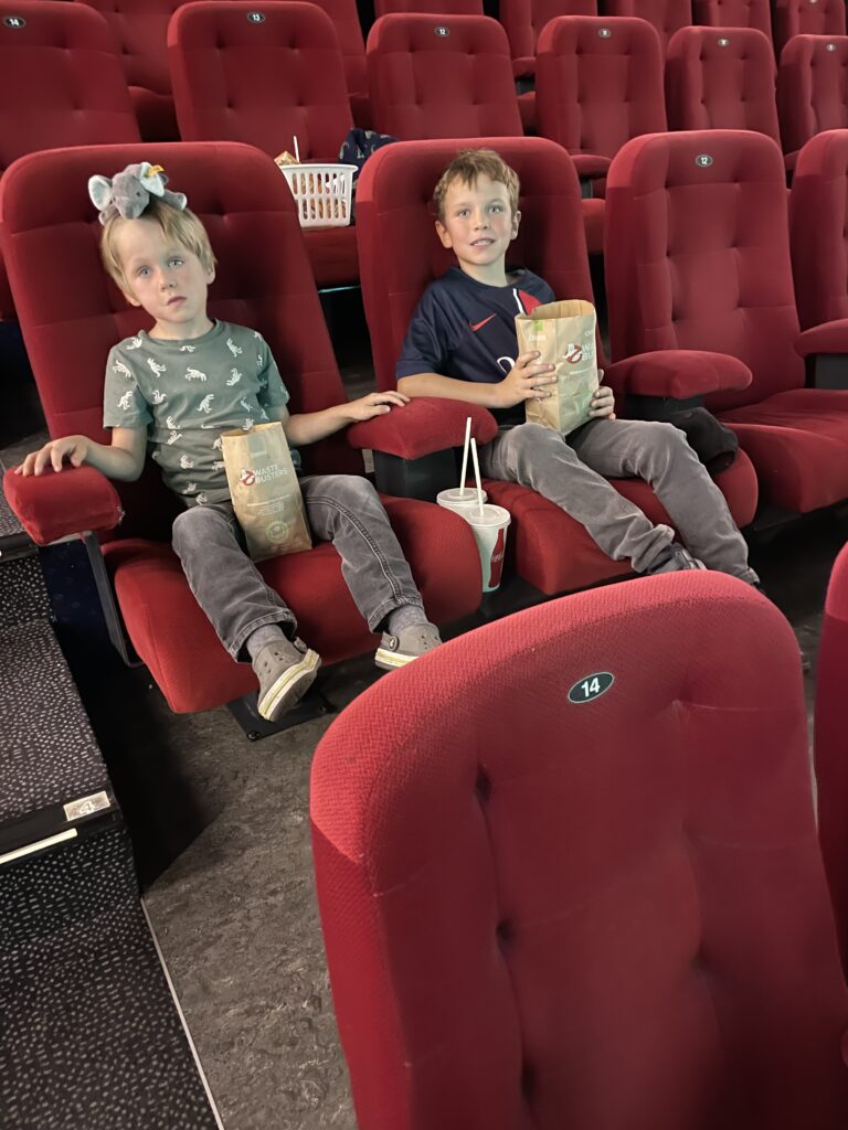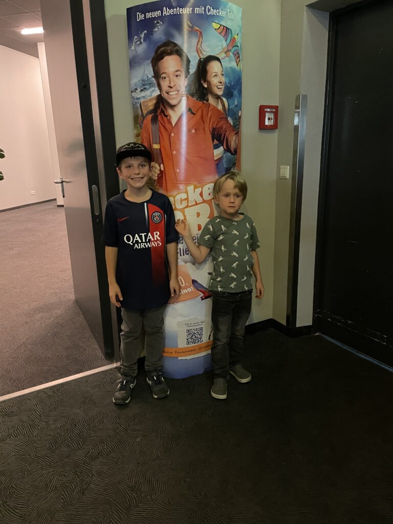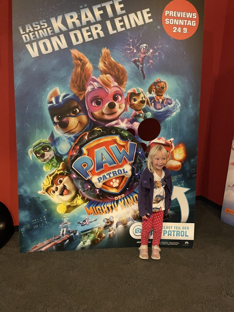 Wir schauen im Kino Paw Patrol und Checker Tobi mit den Kids an.